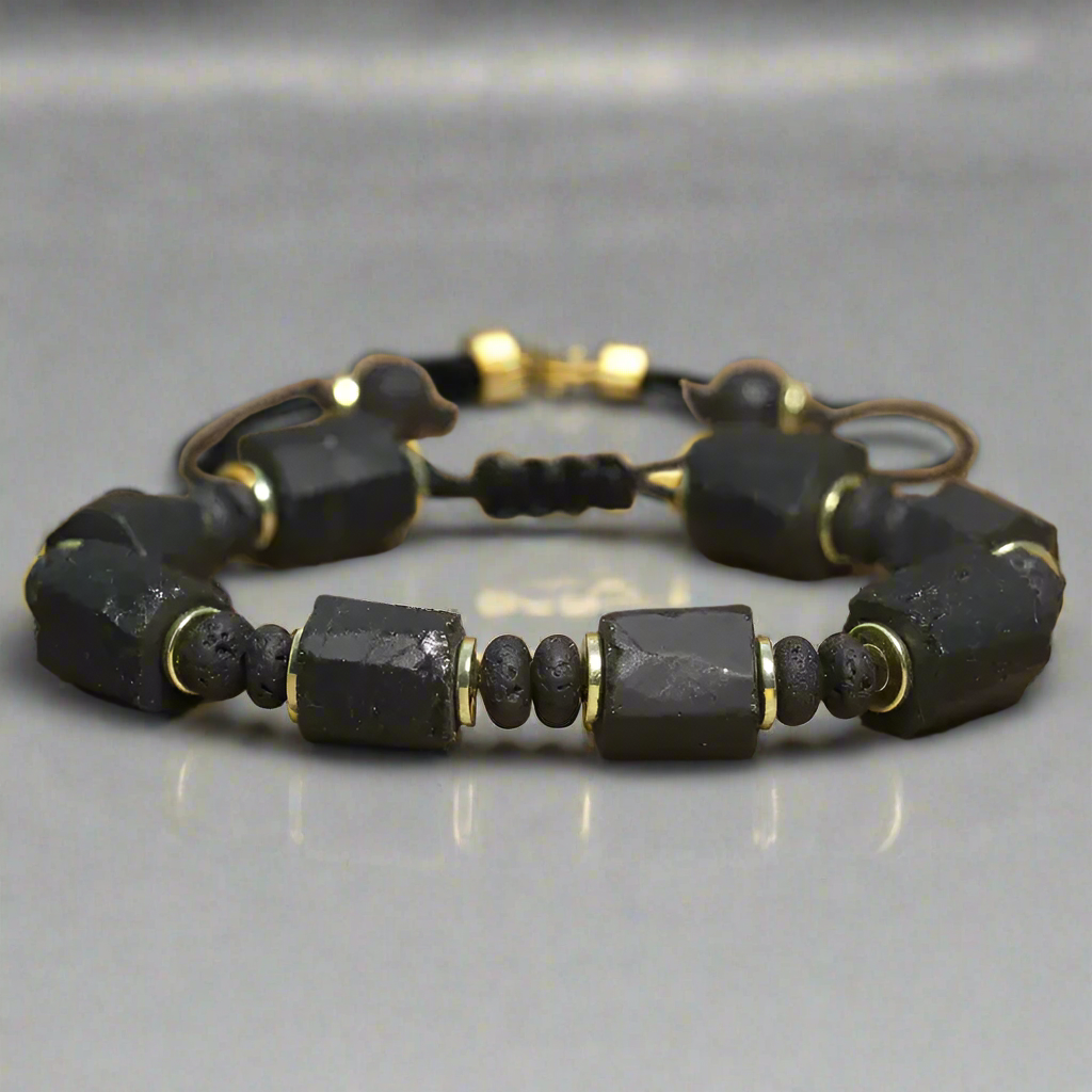 Brățară din Roca Vulcanică și Turmalină – Energie și Protecție
